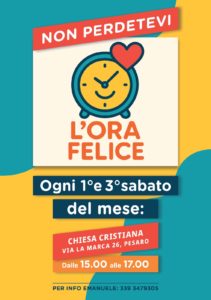 Ora felice per ragazzi e ragazze 18 Ottobre 2025 – 6 Giugno 2026 3.00 pm - 5.00 pm Chiesa evangelica Via la Marca, Pesaro